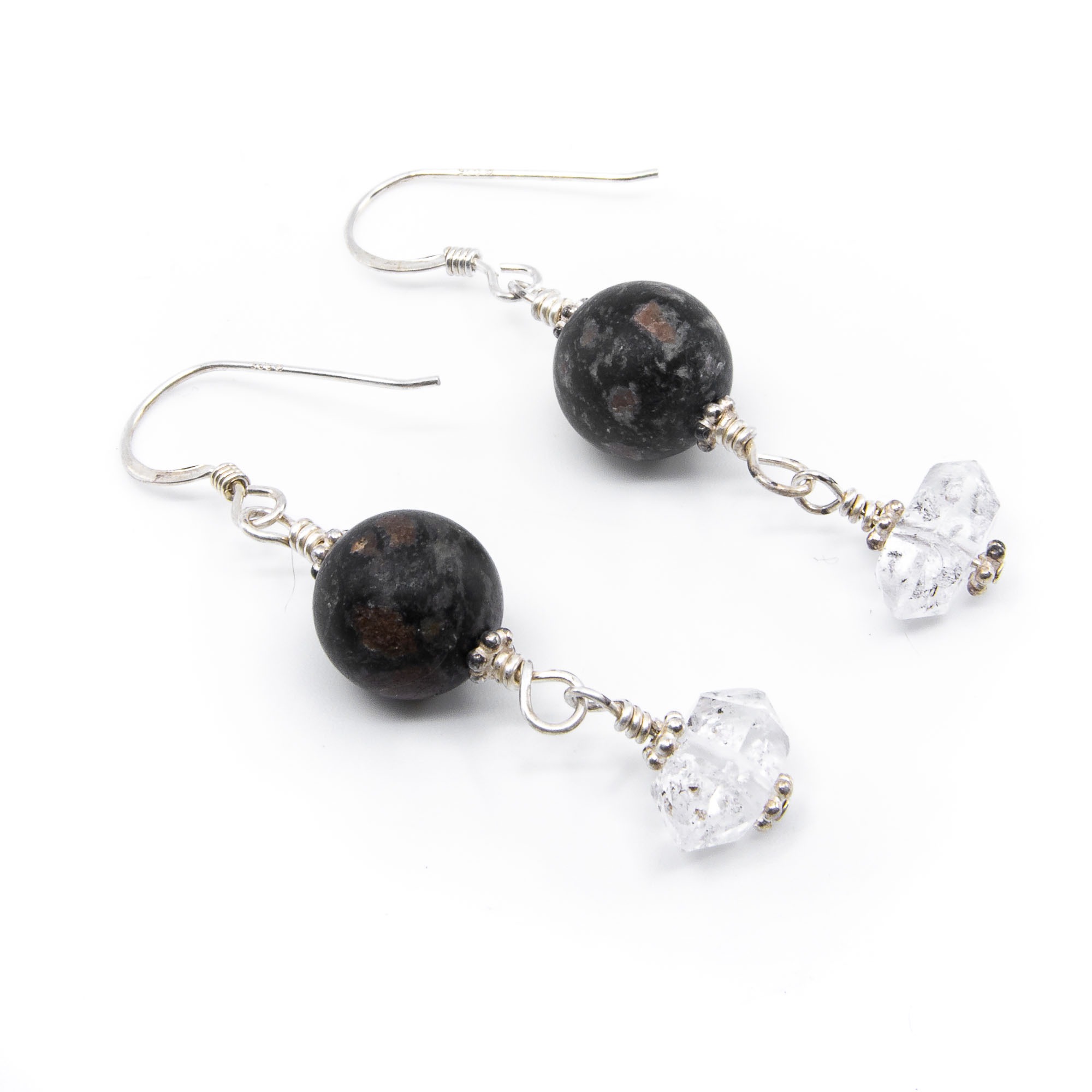 Ohrhänger Granat in Amphibolit mit Kristall