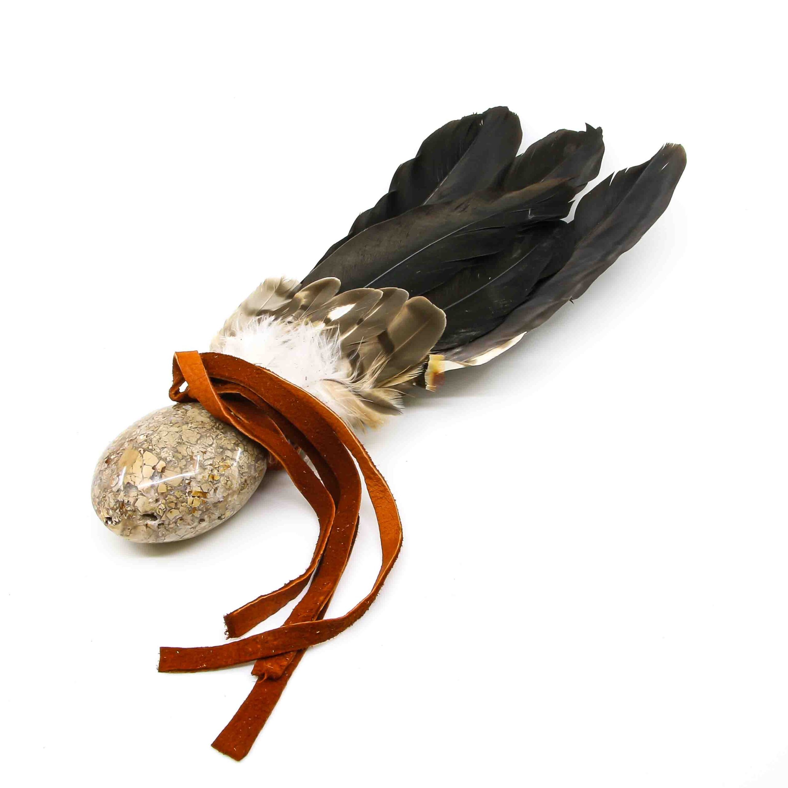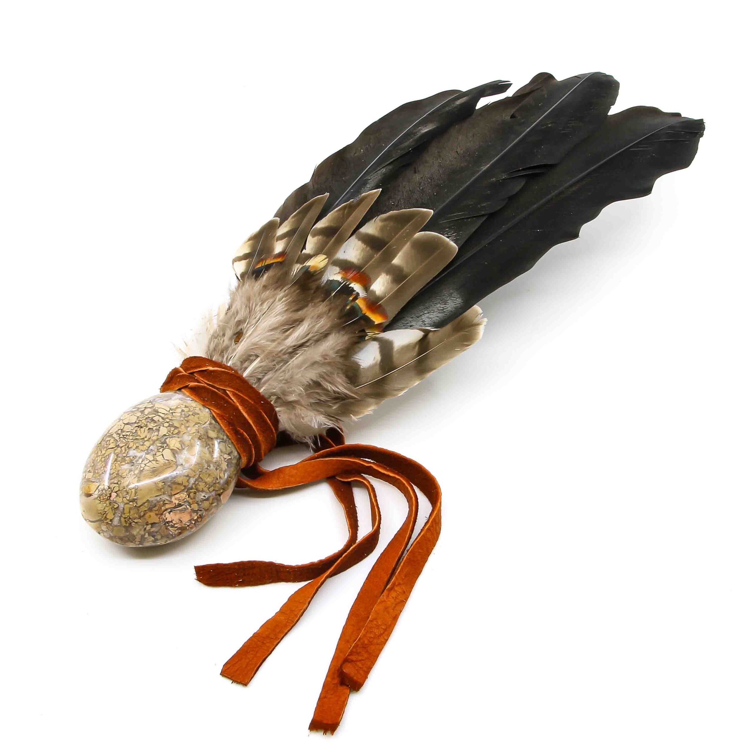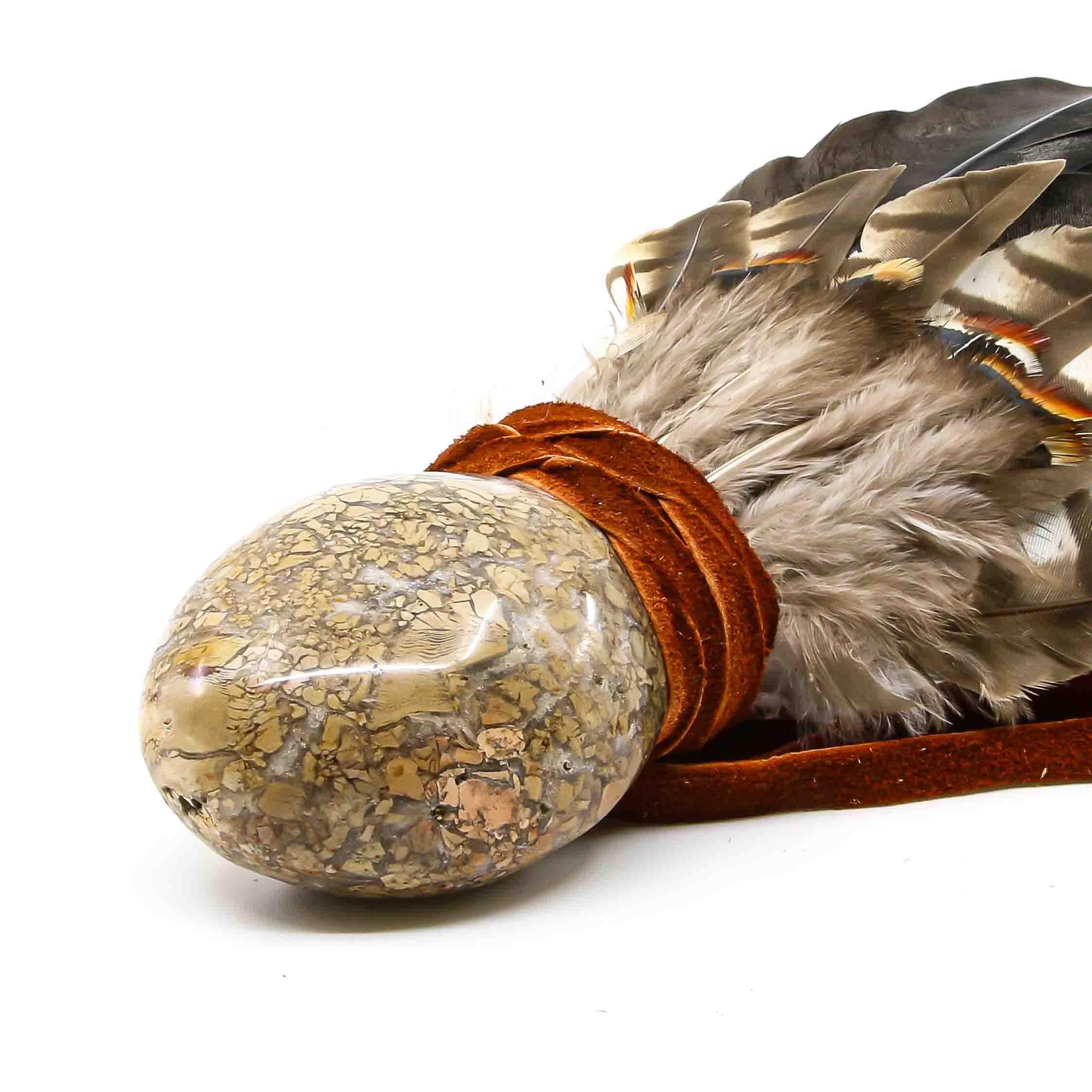 Räucherfächer mit Jaspisbrekzie und Storchenfedern