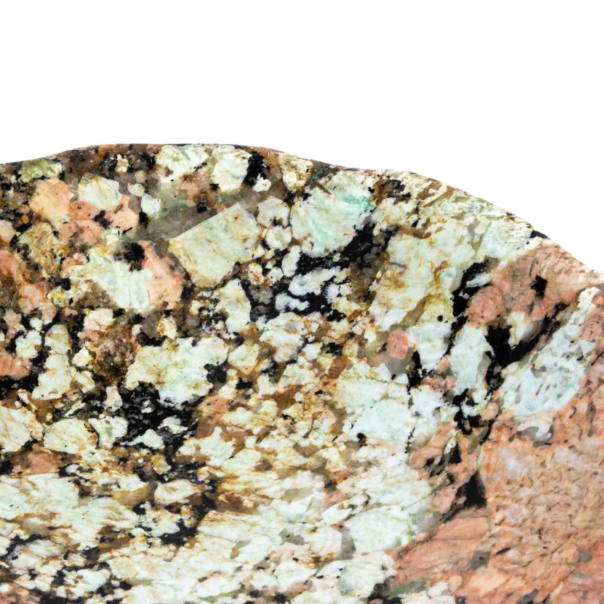 Dieser Stein ist Teil eines granitischen Gesteins und entstand in der Tiefe der Erdkruste unter hohen Temperaturen. Seine Farbe und Struktur machen ihn bis heute zu einem beliebten Sammler- und Schmuckstein.