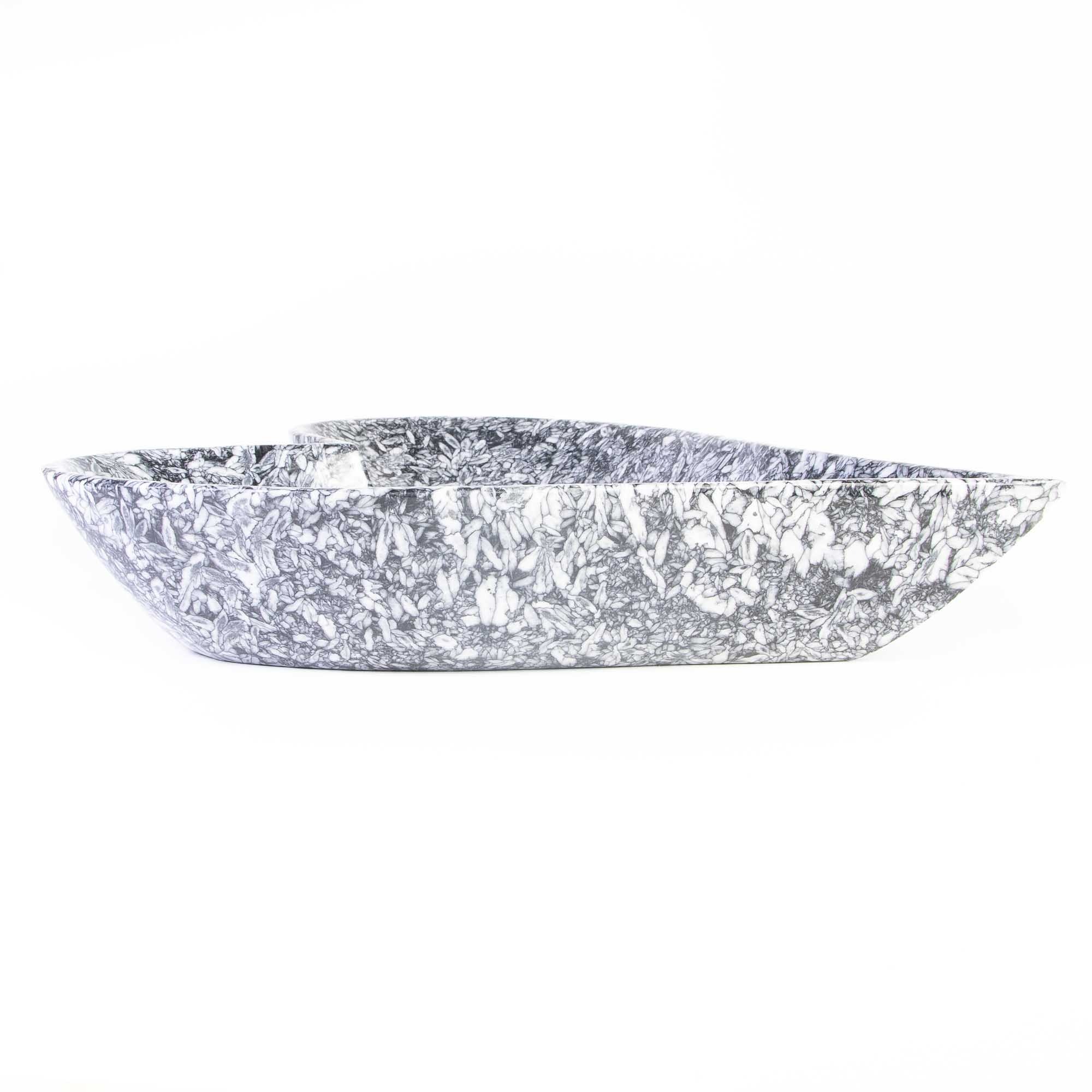 Dieser seltene und auffällige Stein stammt aus dem Magnesit-Bergbaugebiet bei Hohentauern in der Steiermark. Pinolith, auch „Marmorierter Magnesit“ genannt, ist ein metamorphes Gestein, das hauptsächlich aus Magnesit, Dolomit und Graphit besteht. Die charakteristischen weißen bis silbergrauen, länglich-ovalen Einschlüsse erinnern an Pinienkerne – daher der Name „Pinolith“.